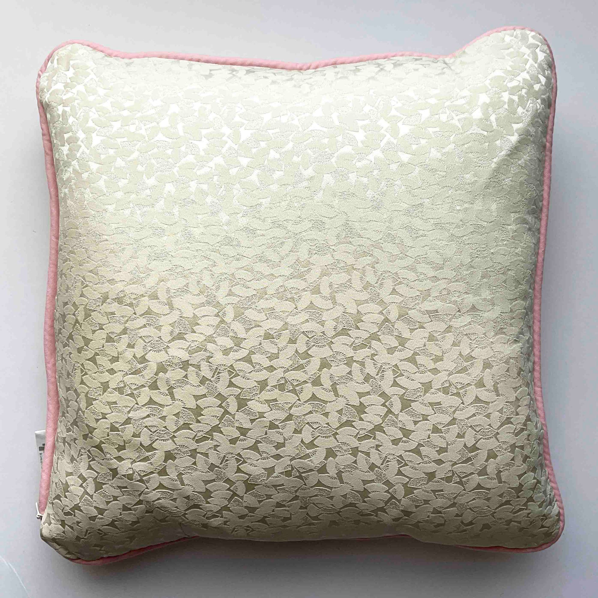 There’s an invisible zip at the side and is the cushion cover is finished with pink cotton piping. You can handwash and iron it with care.