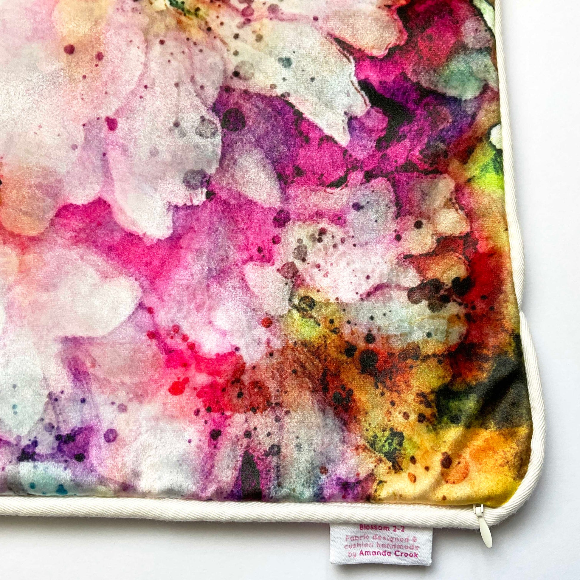 This small velvet cushion cover features one of my watercolour floral prints, Blossom 2-2.