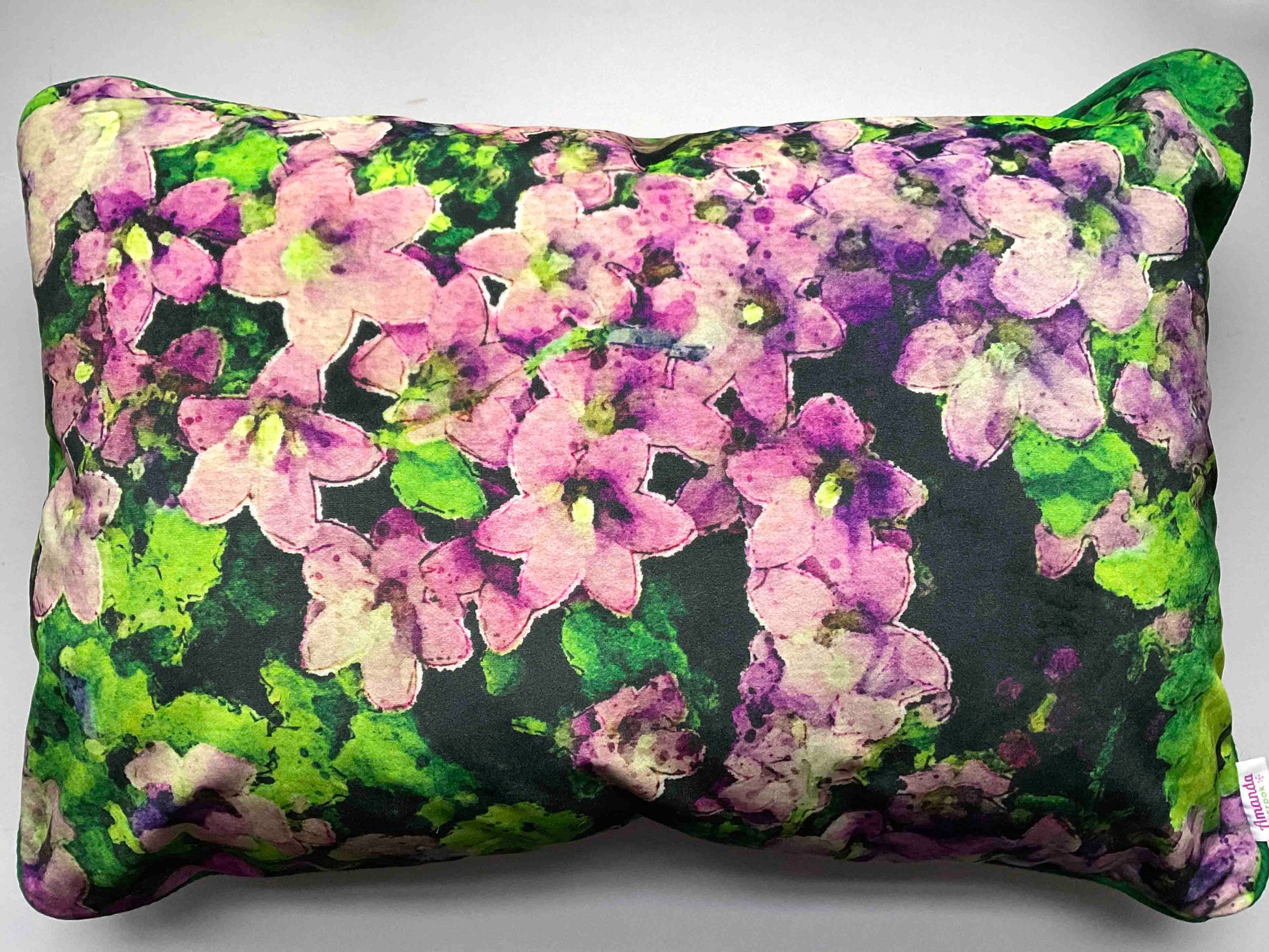 This large velvet cushion cover features one of my watercolour floral prints, Purple Flowers.