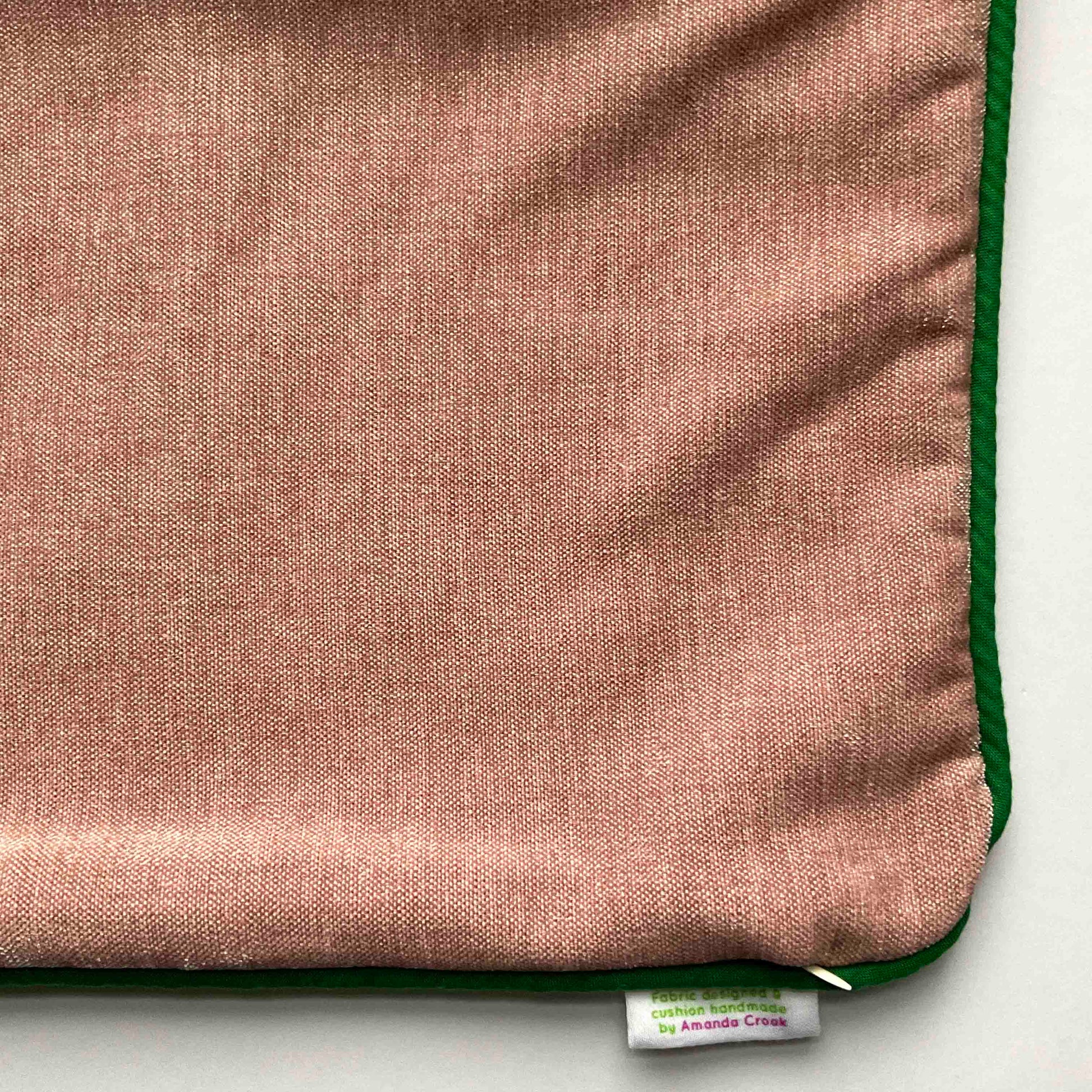 It measures 68 x 48 cm, has a dusky pink chenille fabric on the back and an invisible zip at the side.